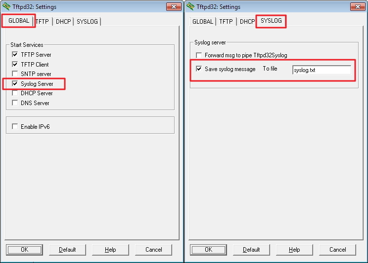 Example 2. Setting up a Tftpd32 syslog server