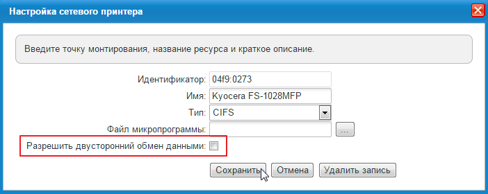 4. Если принтер печатает, но не может остановиться, возможно вы столкнулись с проблемой, которая возникает при включенном Двунаправленном (двустороннем) режиме обмена на принтере. Если это возможно, данный режим следует отключить для корректной работы с интернет-центром. Некоторые принтеры позволяют отключать Двунаправленный режим обмена в своих настройках/свойствах.