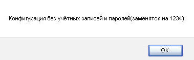Ви побачите інформаційне вікно з повідомленням "Конфігурація без облікових записів і паролів (заміняться на-1234)".