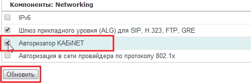 Раніше користувачі оператора КАБiNET запускали програму-авторизатор для підключення до мережі на своєму комп'ютері. Тепер (після додавання авторизатора в Keenetic) можна запускати авторизатор безпосередньо на інтернет-центрі, і доступ в Інтернет буде постійно забезпечений для будь-якого підключеного до інтернет-центру мережевого пристрою, такого як IP-камера, IP-телефон або NAS. При цьому на комп'ютері запускати авторизатор більше не потрібно. На відміну від використовуваної в мережі цього провайдера авторизації через PPTP, спосіб підключення через вбудований авторизатор не накладаються ніяких, крім тарифних, додаткових обмежень на швидкість роботи з Інтернетом.