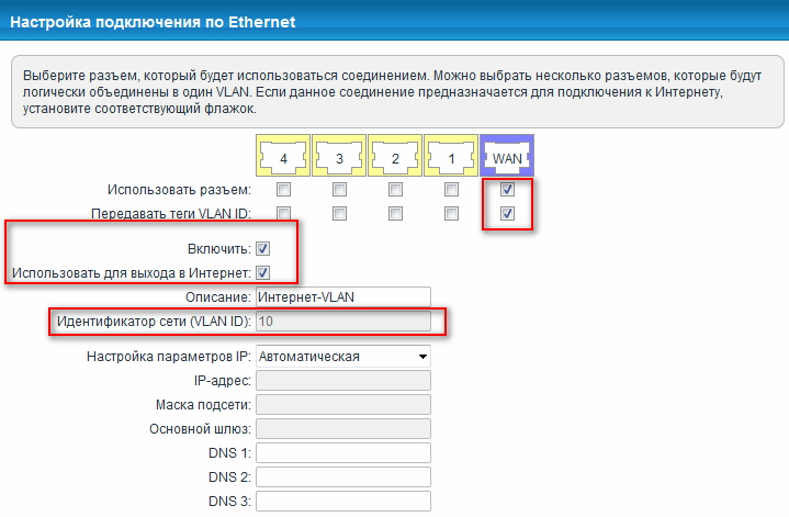 В налаштуваннях інтерфейсу пропишіть необхідні параметри (в нашому прикладі провайдер роздає IP-адреси автоматично).